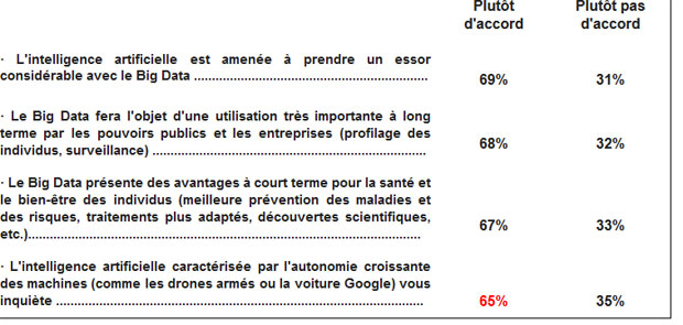 Non, ne paniquez pas, vous n’êtes pas pris dans une boucle spatiotemporelle et de retour en février 76, avec sur l’écran, face à vous, Roger Gicquel. Relativisons dès à présent. La France n’a pas peur de l’intelligence artificielle. Mais une majorité de Français d’un panel de 10004 personnes se déclare plutôt d’accord lorsqu’on lui demande si l’intelligence artificielle « caractérisée par l’autonomie croissante des machines (comme les drones armés ou la voiture Google) » l’inquiète.